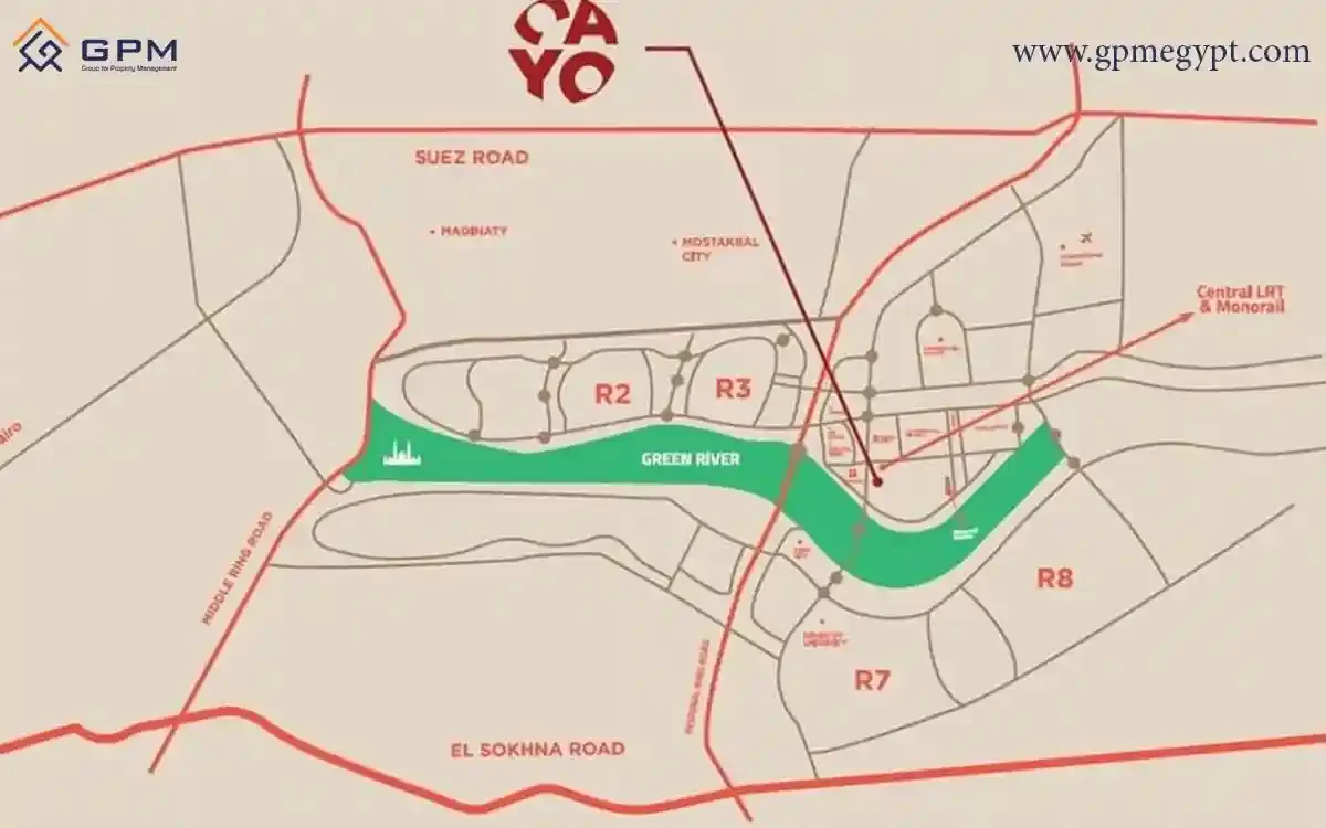 • Cayo Mall New Capital is located very close to many important roads and axes such as Suez Road, Ain Sukhna Road and Mohammed bin Zayed axis
